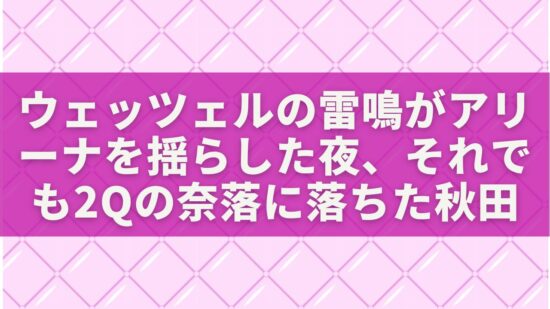 最終スコアは秋田80-93大阪。入りは良かった。1Qは秋田が主導権を握った。問題はそこからです。2Qで試合の主語が大阪に変わり、3Qで差を広げられ、4Qの追撃も振り切られました。