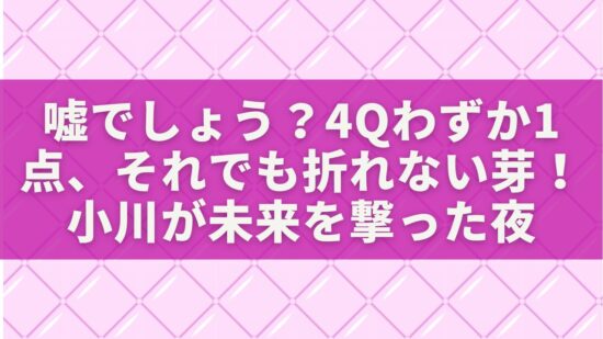 まだ波はあります。ただ、苦しい試合の中で前向きな選択を続けられるガードは貴重です。今日の試合で一番未来を感じた選手が小川だった、という評価は揺らぎません。
