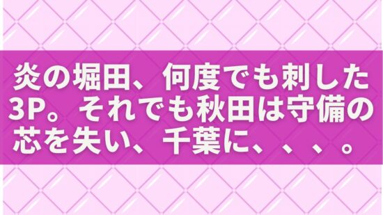 今日のスポットライト 堀田尚秀の3Pは、沈んだ夜に刺さった細く鋭い稲妻でした