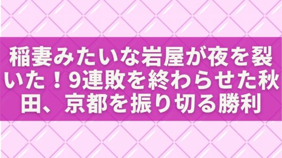 この勝利は、ただ連敗を止めた1勝ではなく、秋田に新しい景色を見せた1勝です。