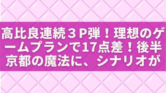 数字だけ見れば9点差で十分なリードですが、最大17点まで開いていた流れを思えば、京都に自信を持ち帰らせてしまった終わり方でした。